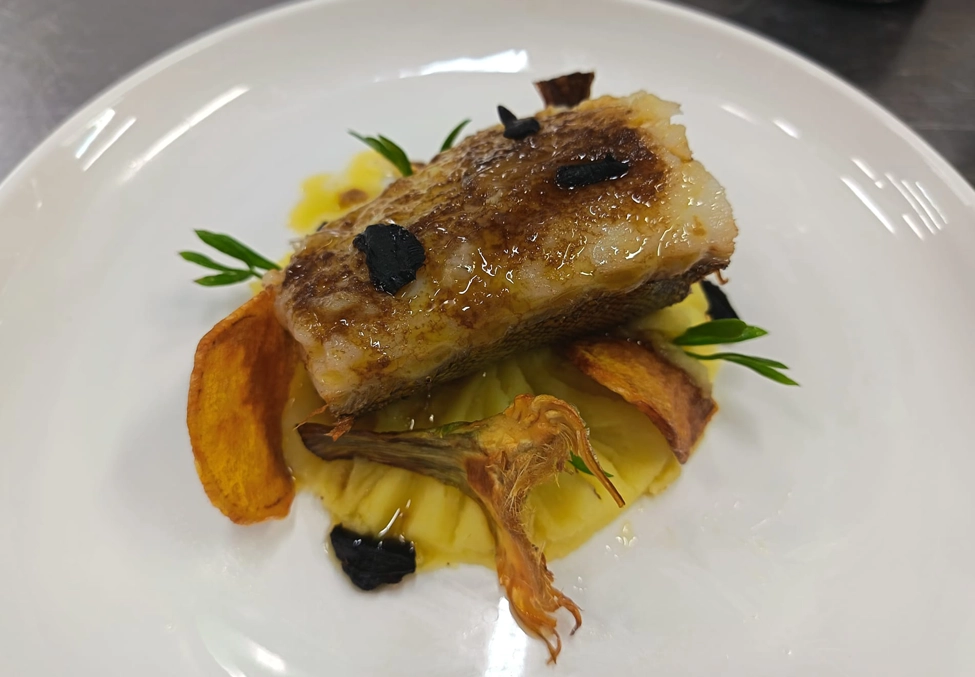 Bacalao coffee-pil sobre cremoso de patata IGP de Galicia